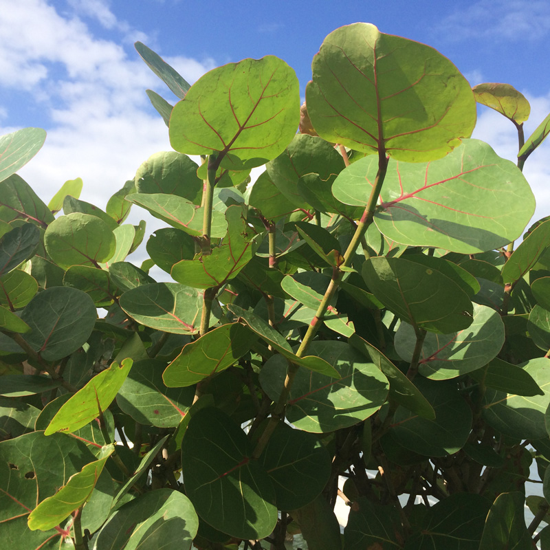 The Seagrape can grow very large but is often kept at 6-8 ft. for privacy, making it a great windbreaker along a beachfront property. The Seagrape can also be pruned into a tree reaching 20-25 ft. in height. The glossy, green leaves often have a red tint to them, measuring around 8 inches in diameter.